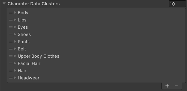| Use Databases | Enum | This enum decides whether this Data Cluster will make use of Character Segments (sprites), Character Color Groups, or both. This can be handy if you want to create a cluster that’s only meant to add a sprite or color instead of both. |