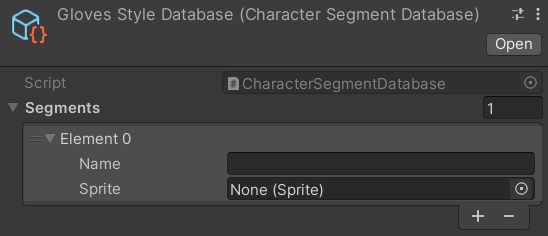 | Character Segment Database | Scriptable Object | The Segment Database for this specific Data Cluster should be placed here. Segment Databases contain data for a specific sprite sheet that belongs to this cluster. If this cluster is supposed to be meant for the character’s hair, the Segment Database should contain all the different hairstyles that the character can wear. |