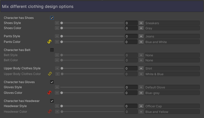 | Is Syncable | Bool | If this boolean is set to true, this Data Cluster can be synced to another Data Cluster. This can be useful if you have matching sprites or matching colors that you want to always equip simultaneously. In the demo, for example, the character can have facial hair and hair on their head. If both of these options are enabled and you try to change the hair color of either cluster, both clusters end up with the same color. This ensures you won’t have to manually set the hair and facial hair colors separately, which might save some time during the creation process. |