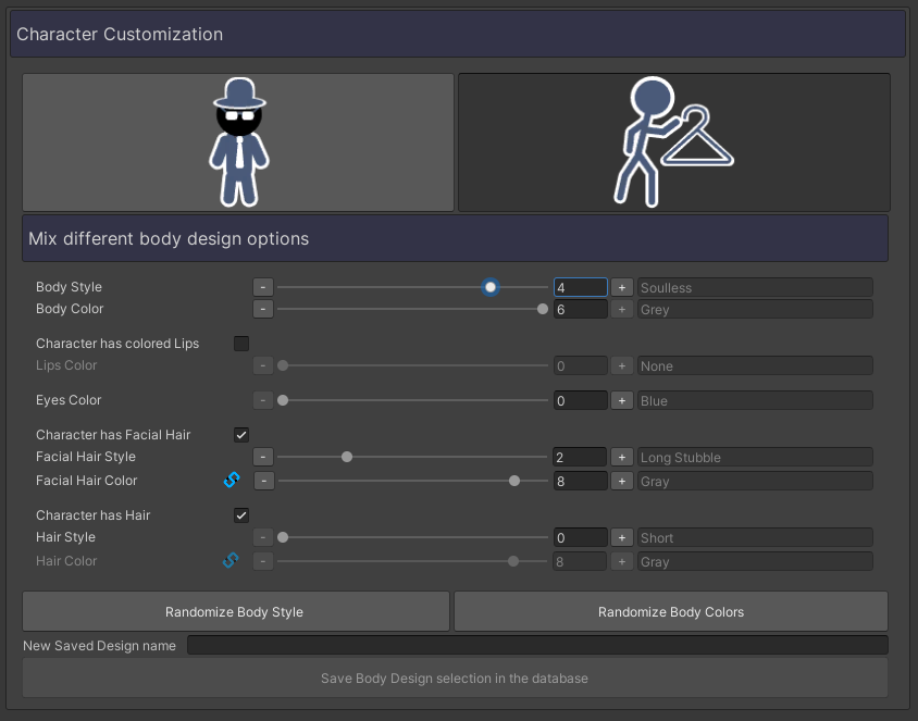 Mix different body/clothing design options